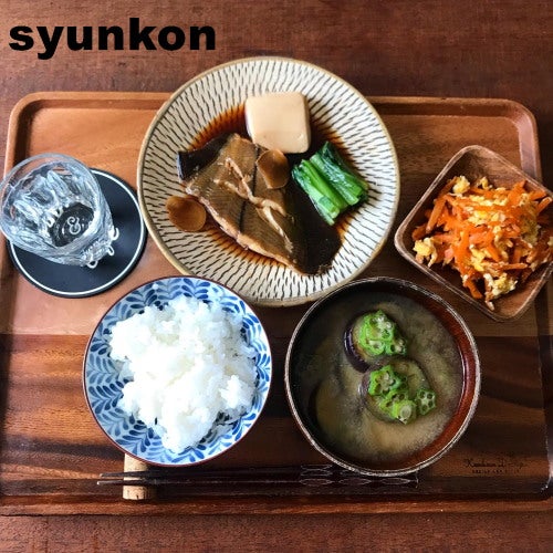 夜ご飯 📝 献立 *赤カレイの煮付け *春キャベツと新玉ねぎのお味噌汁 *オクラのおかか醤油 *ポテトサラダ *フルーツトマト *🍇新生活にバタバタしていて久しぶり投稿になりました☺️ 旬の赤カレイは煮付けに、 春キャベツと新玉ねぎはお味噌汁に♡ あとは。