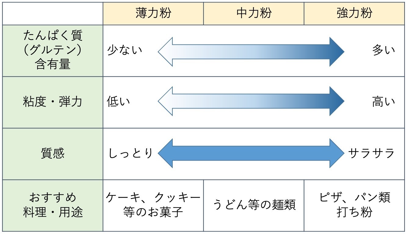 小麦粉の種類、薄力粉・中力粉・強力粉の違いと使い分けまで簡単解説食ノート。