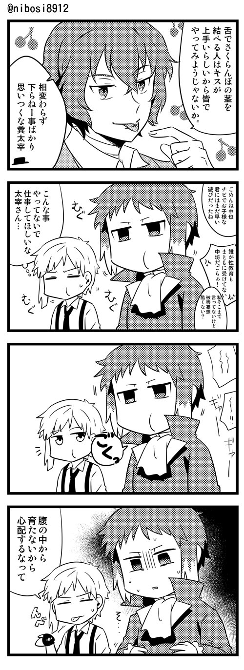 さくらんぼの茎を舌で結ぶかばんさんの四コマシックスねおん さんのイラスト - ニコニコ静画 イラスト。