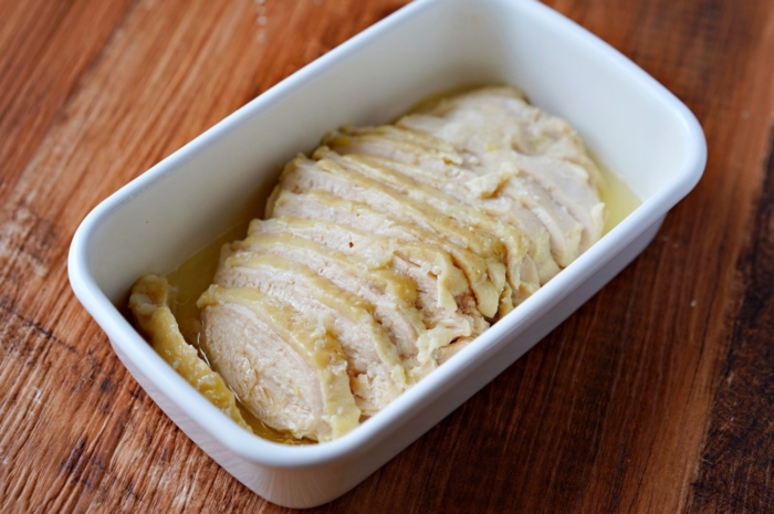 手軽に自家製で!サラダチキンのレシピ 作り方:白ごはん.com。