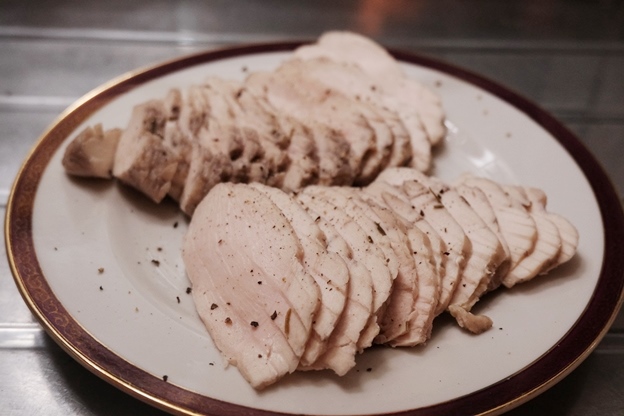 鶏胸肉二段活用:サラダチキンを低温調理器で仕込み、鶏皮をレンジでパリパリにするKarin。