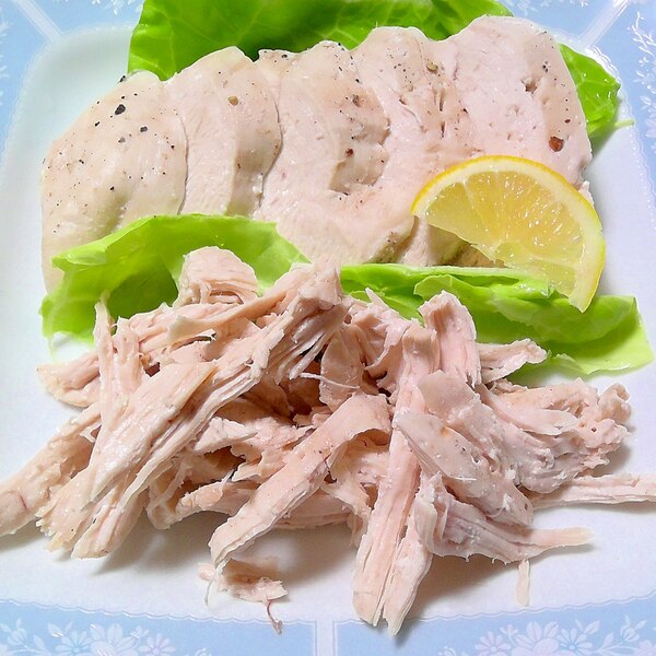 レンジで鶏むね肉サラダチキン 下処理でしっとりやわらか。