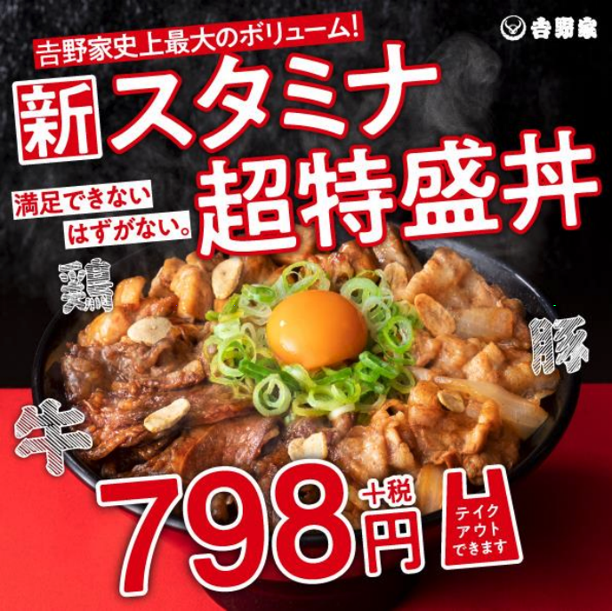 吉野家史上最大ボリューム!総カロリー2,000kcal超『スタミナ超特盛丼』お知らせkataru net カタルネット。