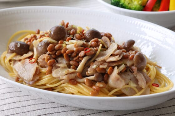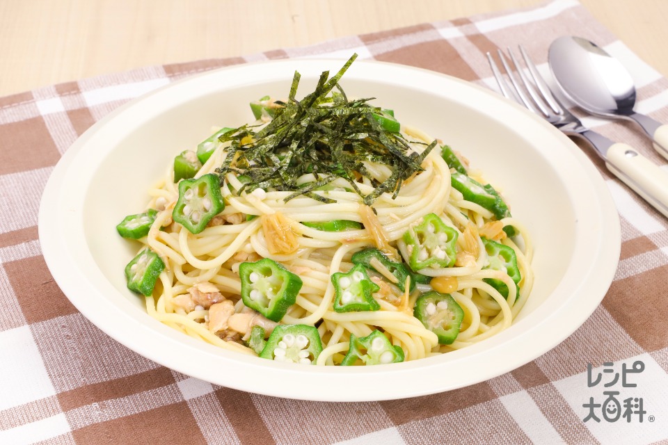 水戻しでモチっと食感!ネバとろ和風パスタの献立 副菜:かぼちゃの和風サラダ 、汁物:かきのみそ汁 献立・メニュー 味の素パーク たべる楽しさを、もっと。