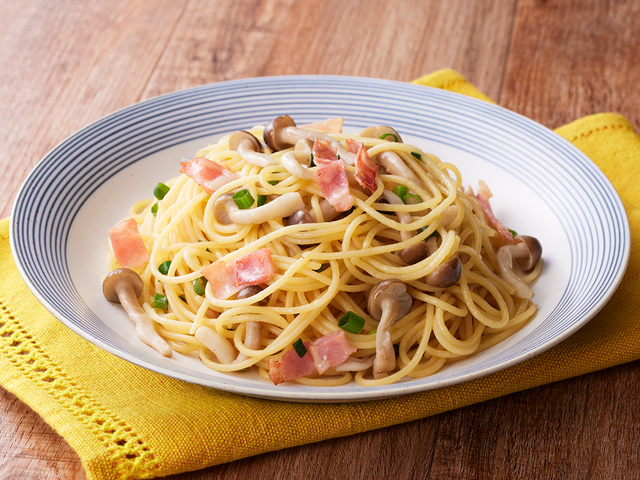 レンジ活用のきのこ和風パスタと人参ドレサラダの一汁一菜の献立白ごはん.comの献立シリーズ:白ごはん.com。
