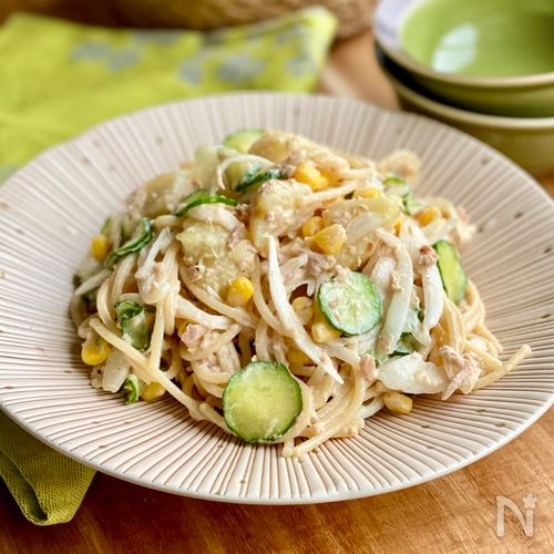 ツナとコーンの冷たい和風パスタサラダレシピ理研ビタミン株式会社。