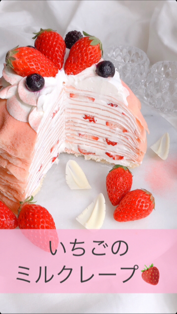 苺いっぱいミルクレープレシピ動画レッスンのご案内作り方ダイジェスト動画。