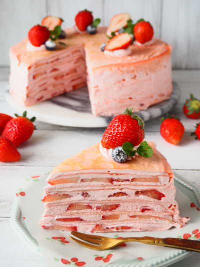 パティシエ ピンクのメルヘンいちごのミルクレープの作り方Strawberry Crepe Cake。