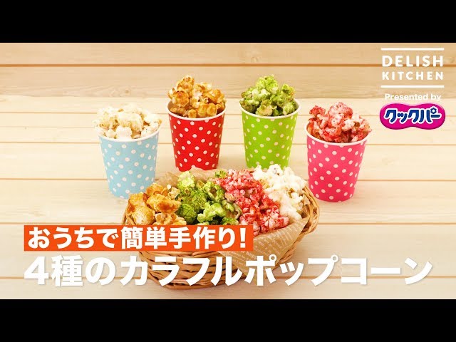 おうちで簡単手作り! 4種のカラフルポップコーンHow to make Four Kinds Colorful Popcorns。