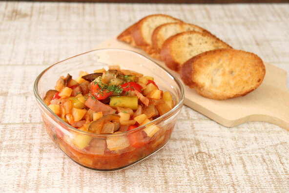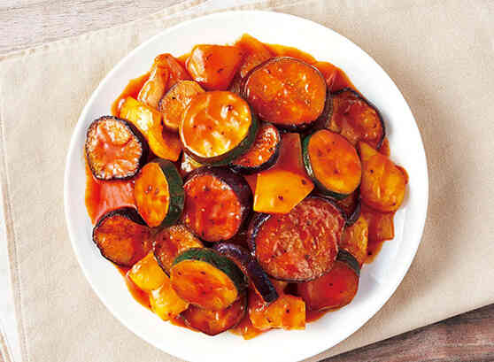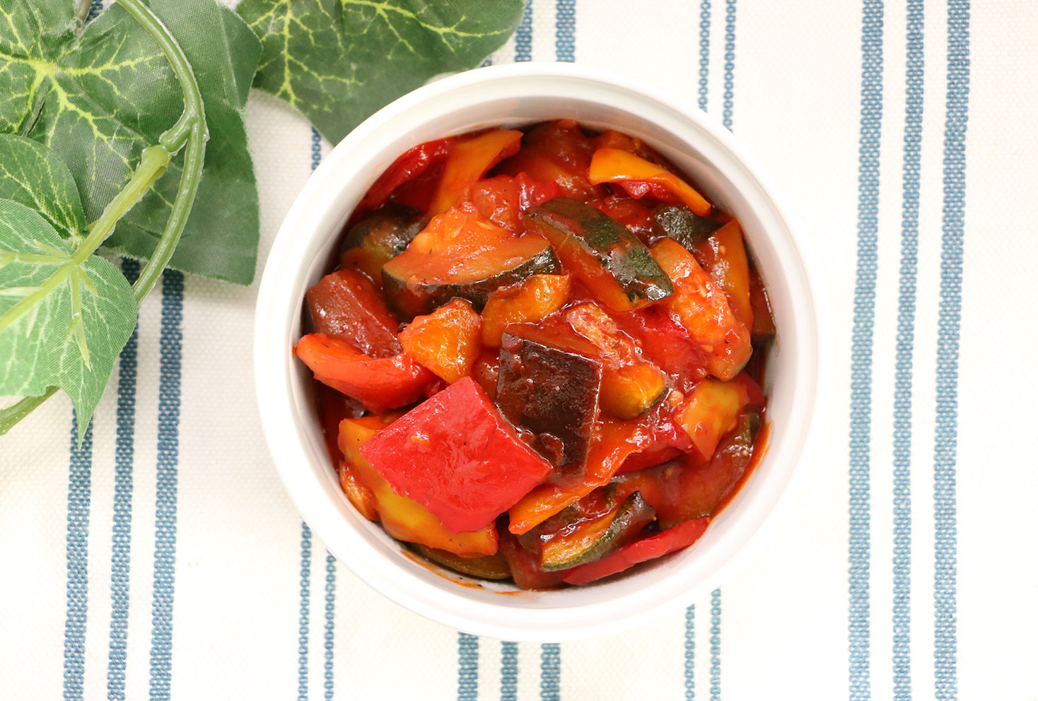 高リコピントマトケチャップのラタトゥイユ給食レシピ。