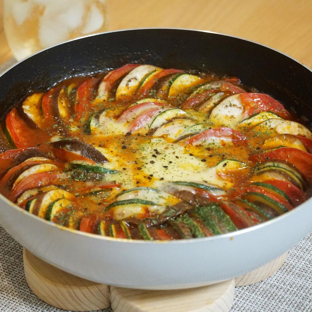 ミートソースで超簡単!フライパンで「チーズのせラタトゥイユ」 - パパっとおうちごはん。