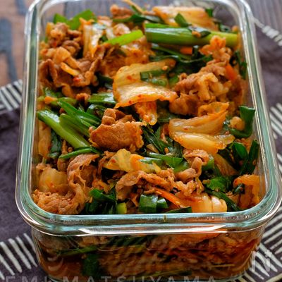 長い夏休み始まりましたね🌻, お昼ご飯って毎回悩むけど、少しでも参考になれば嬉しいです♡, ゆる〜く頑張ろう💪, ・, @minae412◀︎こどもごはん、子供が喜ぶ簡単スイーツレシピをのせてます♡, ・,材料 , 豚肉細切れ300g 牛肉でも , ⚫︎醤油、酒大さじ1,⚫︎にんにくチューブ適量, ★醤油 大さじ2, ★酒 大さじ2, ★オイスターソース大さじ1,。