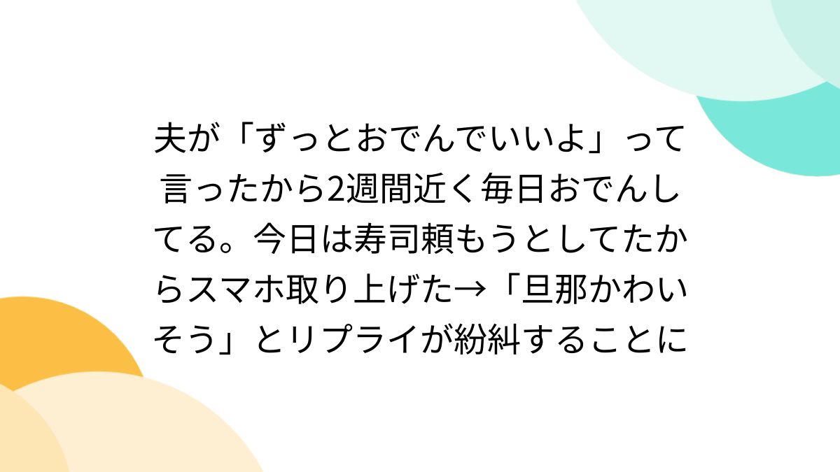 夫が「ずっとおでんでいいよ」って言ったから2週間近く毎日おでんしてる。今日は寿司頼もうとしてたからスマホ取り上げた→「旦那かわいそう」とリプライが紛糾することに- posfie。
