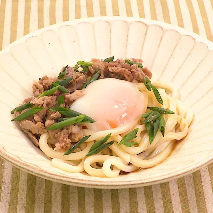 麺に絡む甘辛タレ♪簡単『汁なし牛すきうどん』のレシピ・作り方 - ちょこっと学べるレシピサイト『なるほど食堂』。