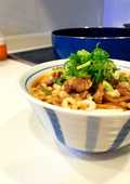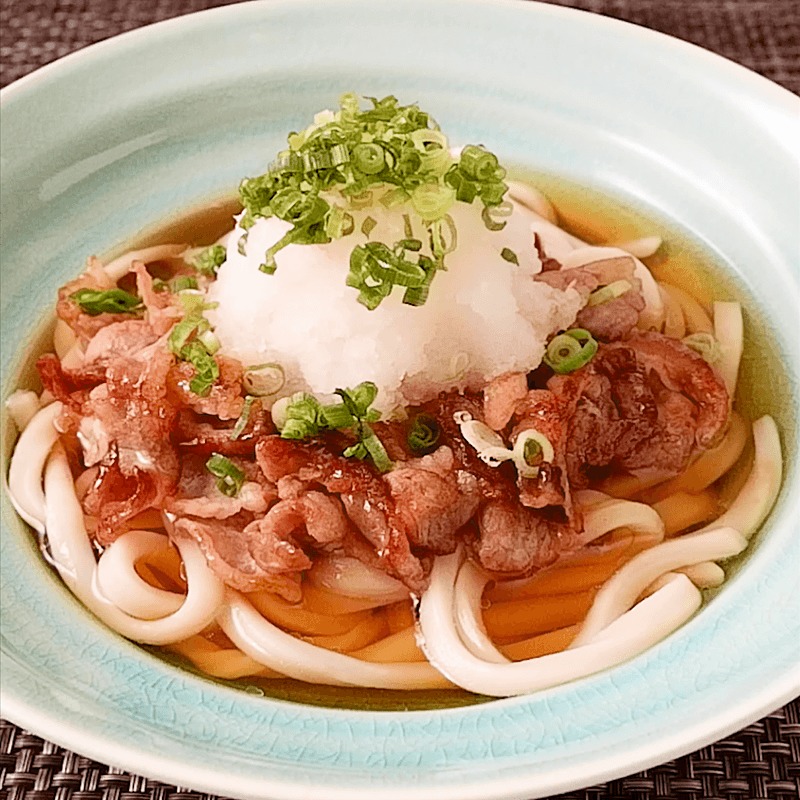 おつゆは混ぜるだけ 牛でも豚でも絶品♪ 甘辛おろし肉うどん。
