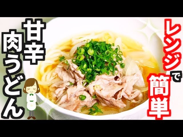 レンジで簡単!冷凍うどんで『甘辛肉うどん』Salty-sweet meat udon - YouTube。