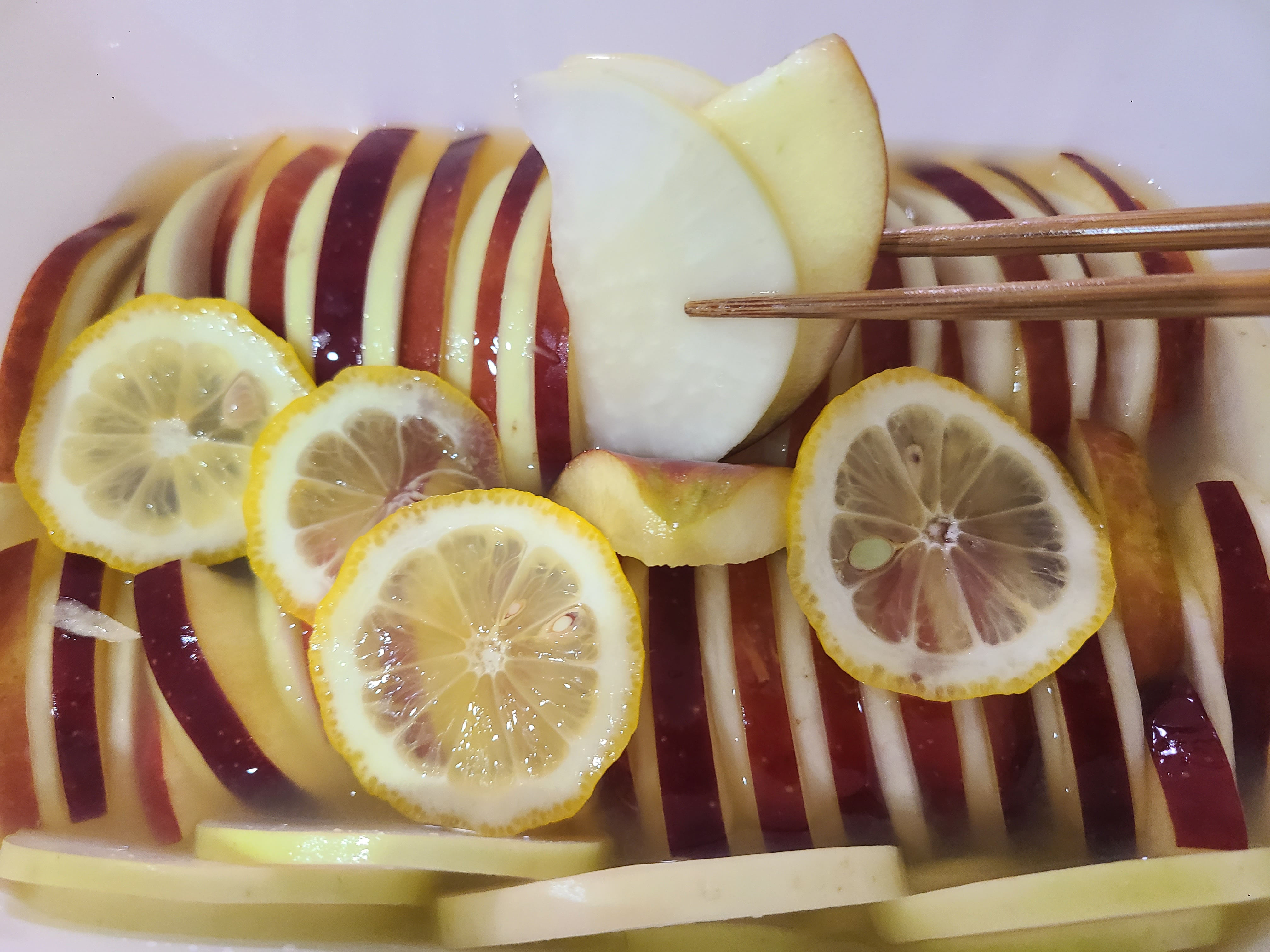 りんごの変色防止にはこれが一番!塩水か砂糖水。つける時間や濃度を解説やまでら くみこ のレシピ。