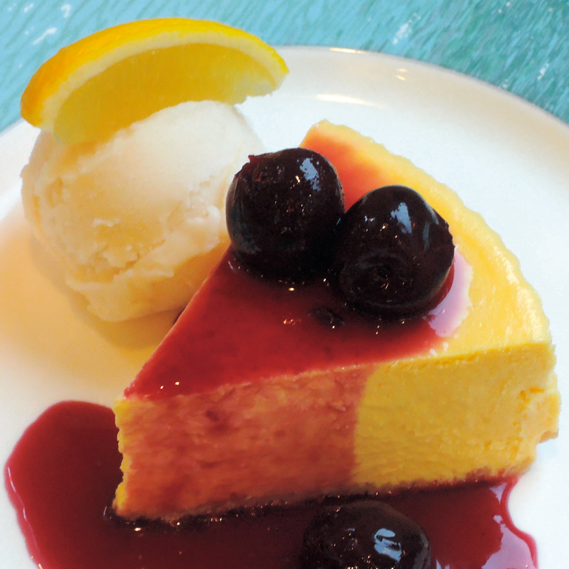 川越 鉄板焼きケルンプロデュースコースのデザート 今月のプロデュースコース「サファイア」から、 デザートをご紹介。 プレートデザート ベイクド チーズケーキに、 カシスのシャーベットと、 季節のフルーツを添えました。 プロデュースコース「サファイア」は、 10 9。