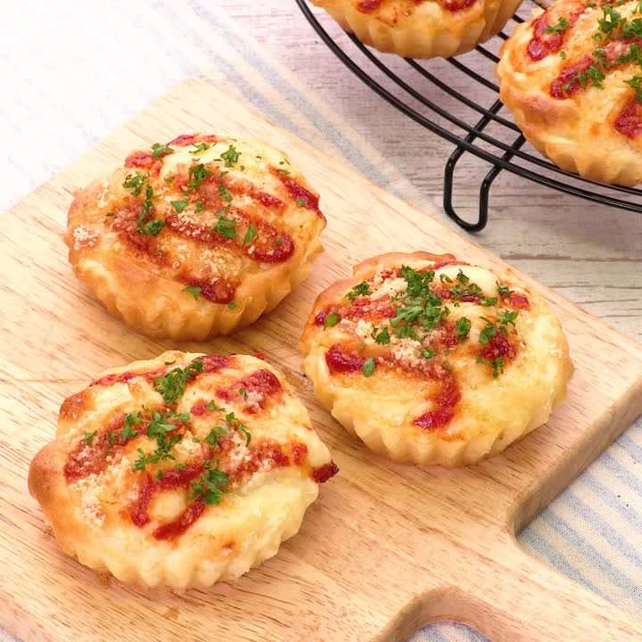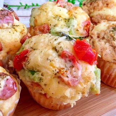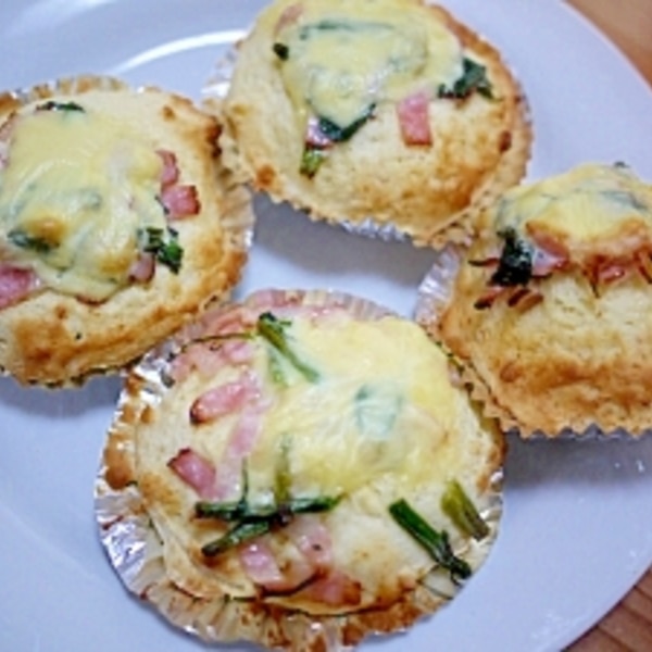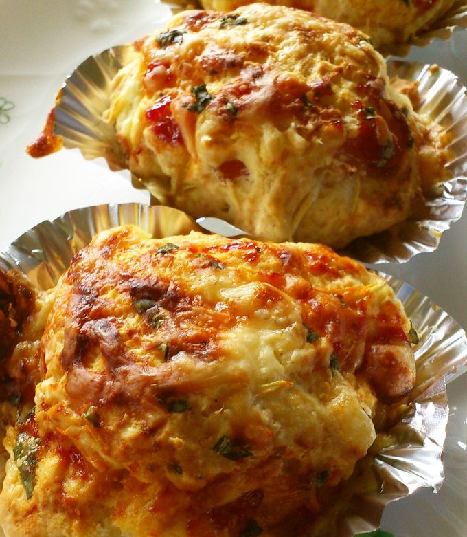 お食事マフィン お総菜パン の作り方♪ホットケーキミックス使用で混ぜて焼く迄10分!簡単な朝食やランチにいかがでしょうか。