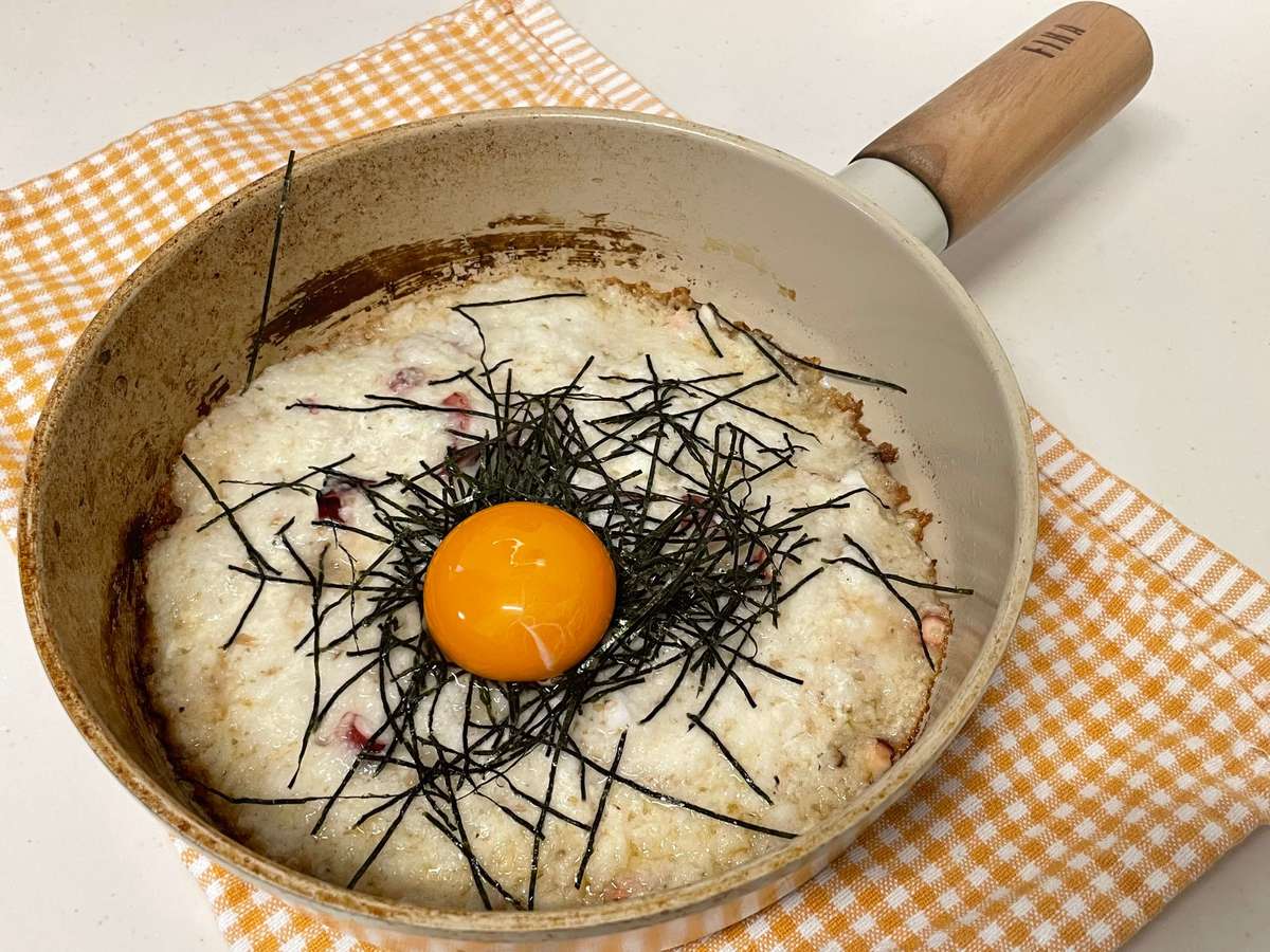 むっちん 料理家 on X: "セブンのとろろで作る究極ヘルシーな鳥貴族風 ふんわり山芋の鉄板焼き。フライパン にとろろを流し弱火で焼き、マヨビームと卵黄ぽとり。3分でできて満足度大、とろろは1袋58kcalだから減量中の夜食にも◎明太子を混ぜると尚罪深くお酒がグイグイ。