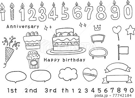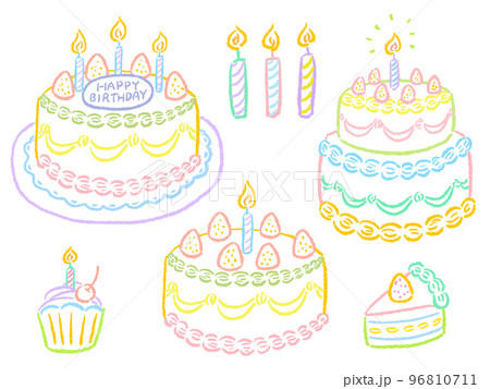 誕生日のケーキ カラフルでシンプルでかわいい手描きの線画イラストセットのイラスト素材96810711- PIXTA。