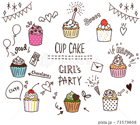 カップケーキ。手書き風スイーツ。ベクターイラスト素材223538078 毎月1点無料 フリー のストックフォト イメージマート。