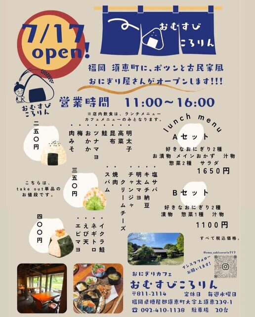 おにぎりカフェ おむすびころりん@omu_subicororin717· Sue-machi Kasuya-gun, Fukuoka。