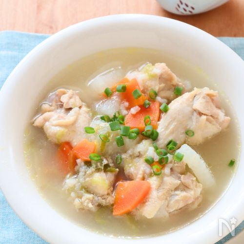 参鶏湯 麹で味付け簡単レシピ✨圧力鍋や炊飯器を使うと一発で完成します♡。