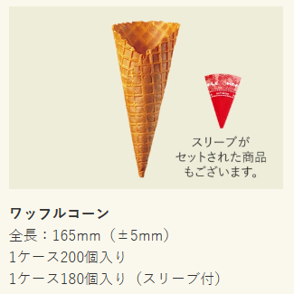 森永乳業販売ワッフルコーン スリーブ付180個業務用 製パン・製菓の原材料の『marustock』長野の老舗原材料問屋丸冨士が運営しています。