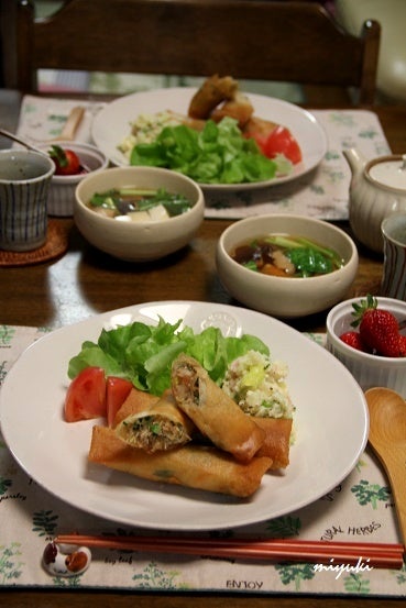エビとひき肉の春巻き。晩ごはん。miyukiのスマイルキッチン。