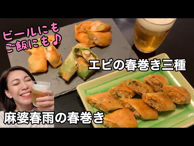 エビの春巻き三種と麻婆春雨で簡単春巻き春巻き10本で4種類楽しめる、ビールのお供に晩御飯のおかずにぴったり♪ 半調理の麻婆春雨を使うことで春巻きの具材が簡単に作れます!- YouTube。