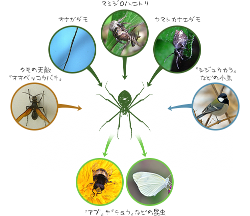 森の生きもの観察:森のつながりを探そう06 クモ・蜘蛛・くも私の森.jp 〜森と暮らしと心をつなぐ。