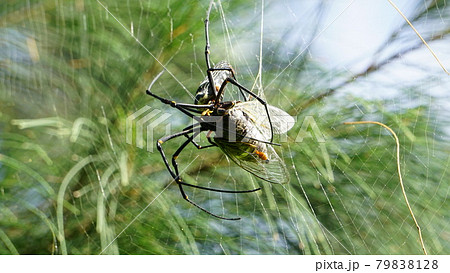 セミを食べるクモの写真素材79838128- PIXTA。