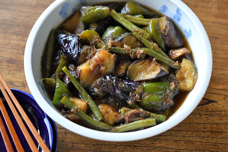 いちばん簡単ななすの煮物「なすとピーマンの直煮」 だし汁不要で簡単:白ごはん.com。