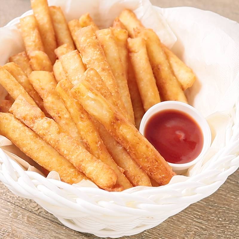 もちもちロングフライドポテト 作り方片栗粉なしTikTok。