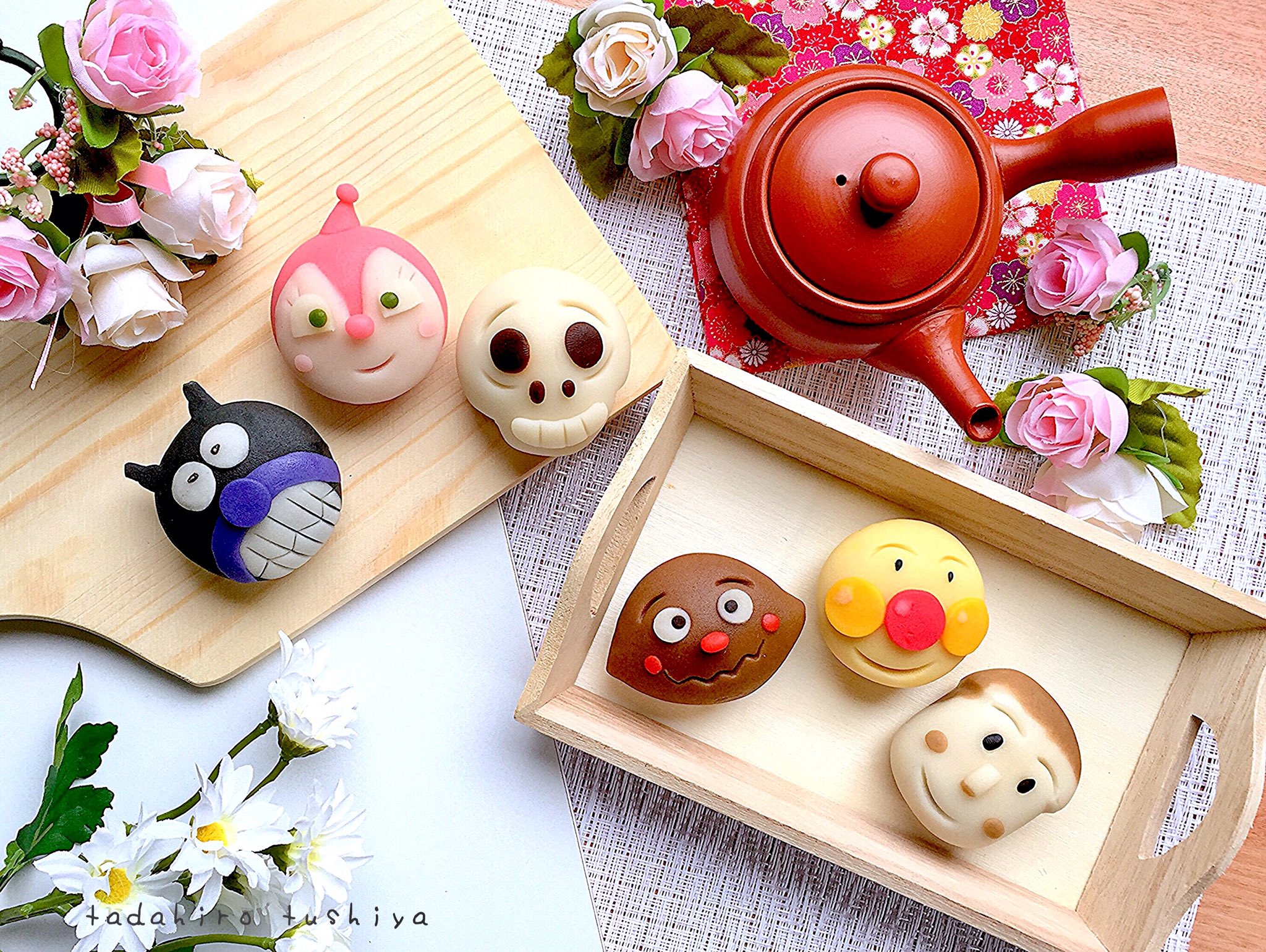 和菓子職人 土屋 タダヒロ on X: "-アンパンマン和菓子- 『日本伝統菓子』 和菓子で作ったアンパンマンの仲間たち。 カレーパンマンの餡子は、、カレー味、、、じゃなくて普通にこしあんだけど笑和菓子上生菓子土屋タダヒロアンパンマンキャラクター和菓子。