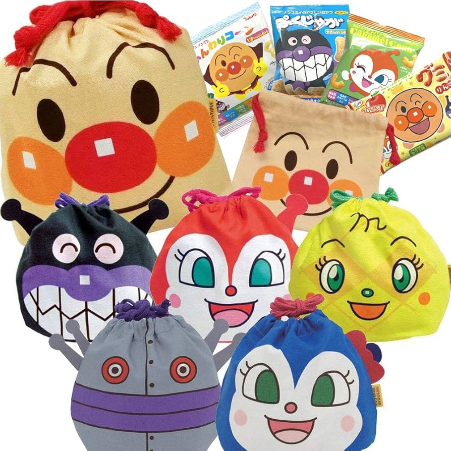 Amazon.co.jp: anpan-okasi980当店オリジナル アンパンマン フェイス巾着+お菓子詰め合わせセット 駄菓子 収納 袋キャラクターk コキンちゃん: ファッション。