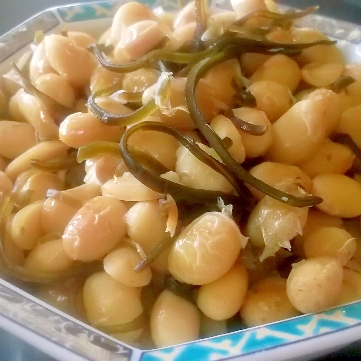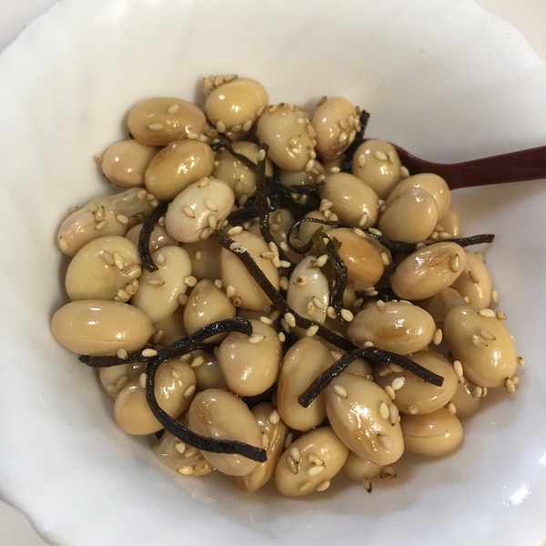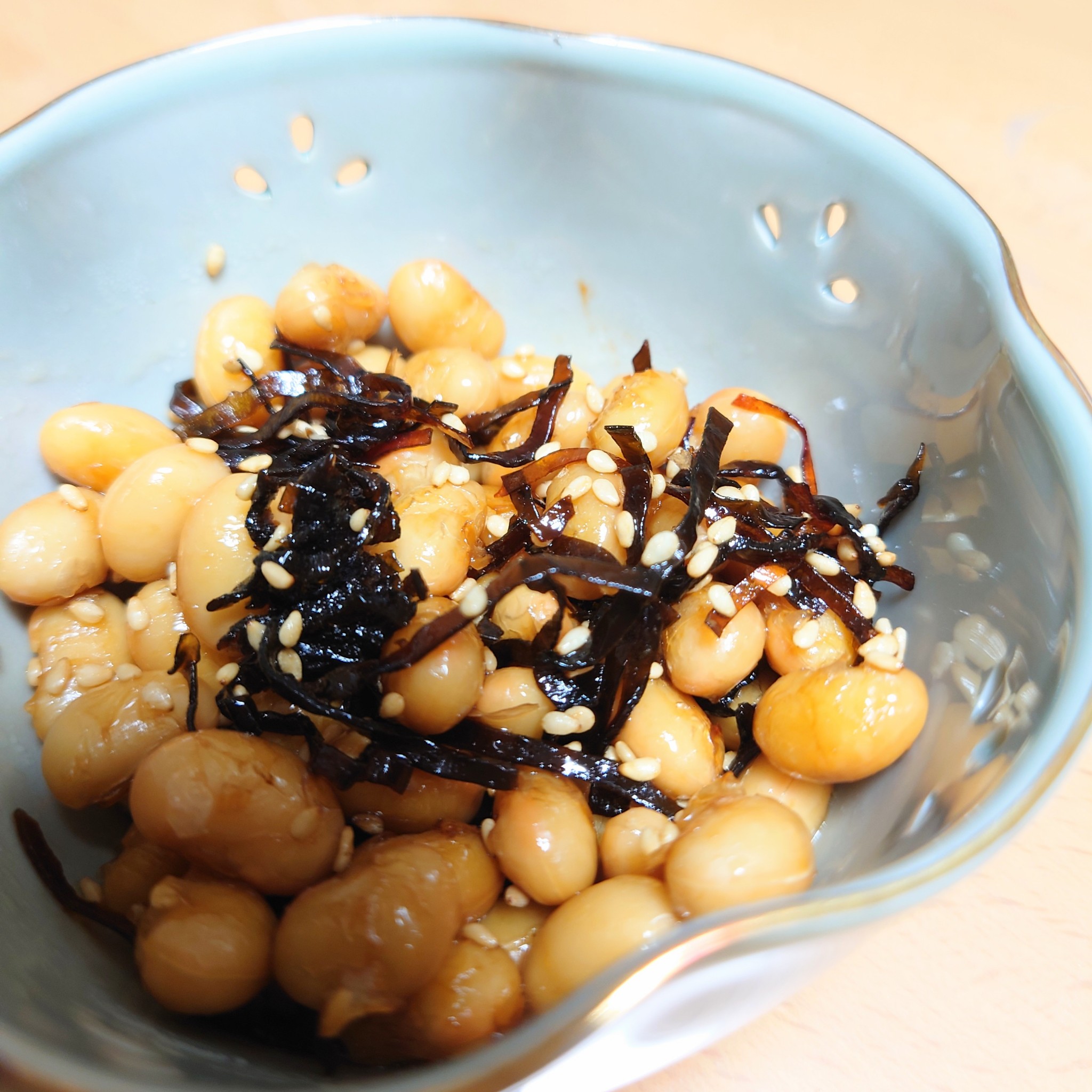 大豆の水煮で❤水飴の甘さでアッサリ煮豆♪ 塩昆布。