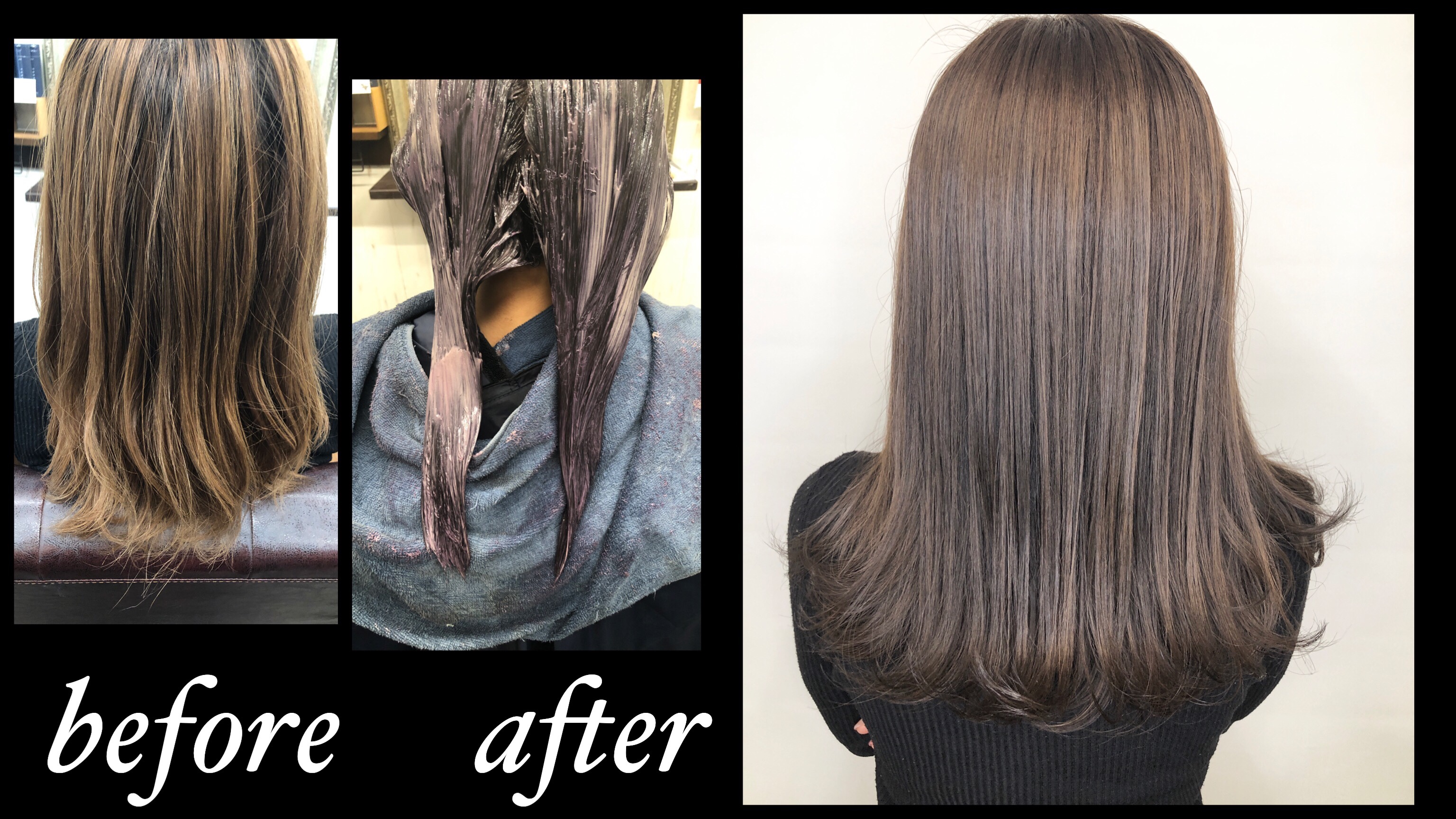 ハイライトで作る秋のミルクティーベージュ施術中の様子や店内の雰囲気を画像でご紹介栗東の美容室・Hairsalon Jap。