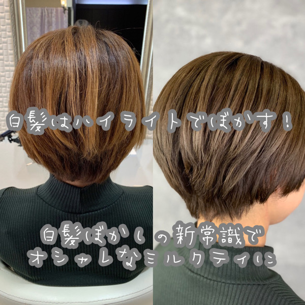 ミルクティーベージュ ハイライト暗め 40代TikTok。