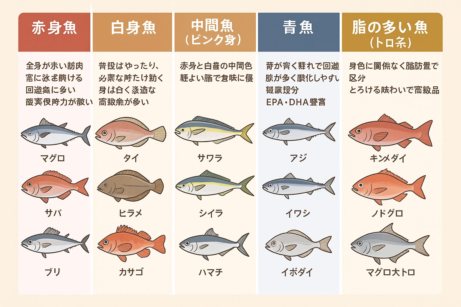 魚は赤身・白身だけじゃない!もっと細かい分類と特徴一覧。