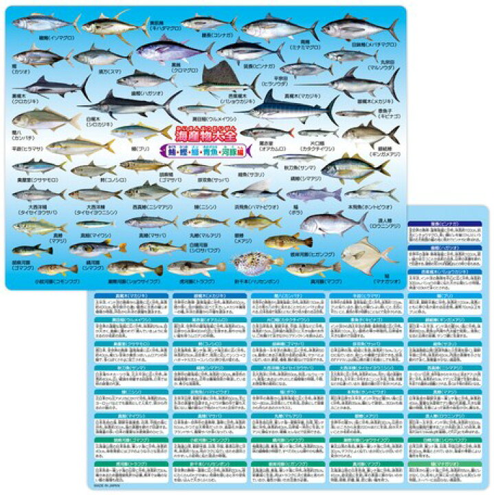 楽天市場1000円ポッキリ! 送料無料 海産物大全 鮪・鰹・鰤・青魚・河豚編 55種類 下敷き約H210×W297mmA4サイズ 魚水族館 海 生き物 イラスト 小学生 子供 男 男の子 女 女の子 喜ぶ グッズ 誕生日 誕生日プレゼント 買い回り ポイント消化 お歳暮 2023メール。