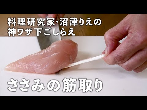 初心者必見! ささみの筋取り・茹で方をプロが解説!レンジを使った方法も紹介♪ - YouTube。