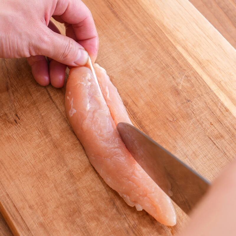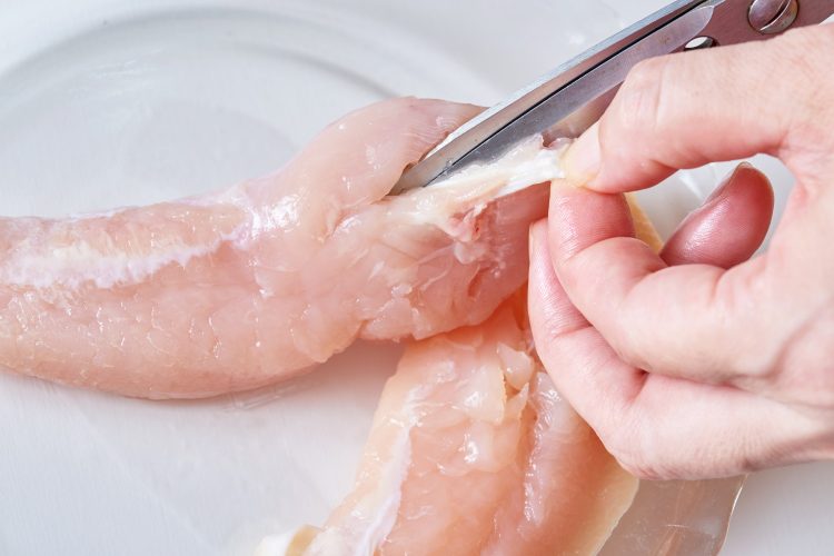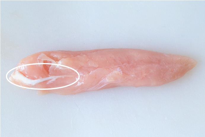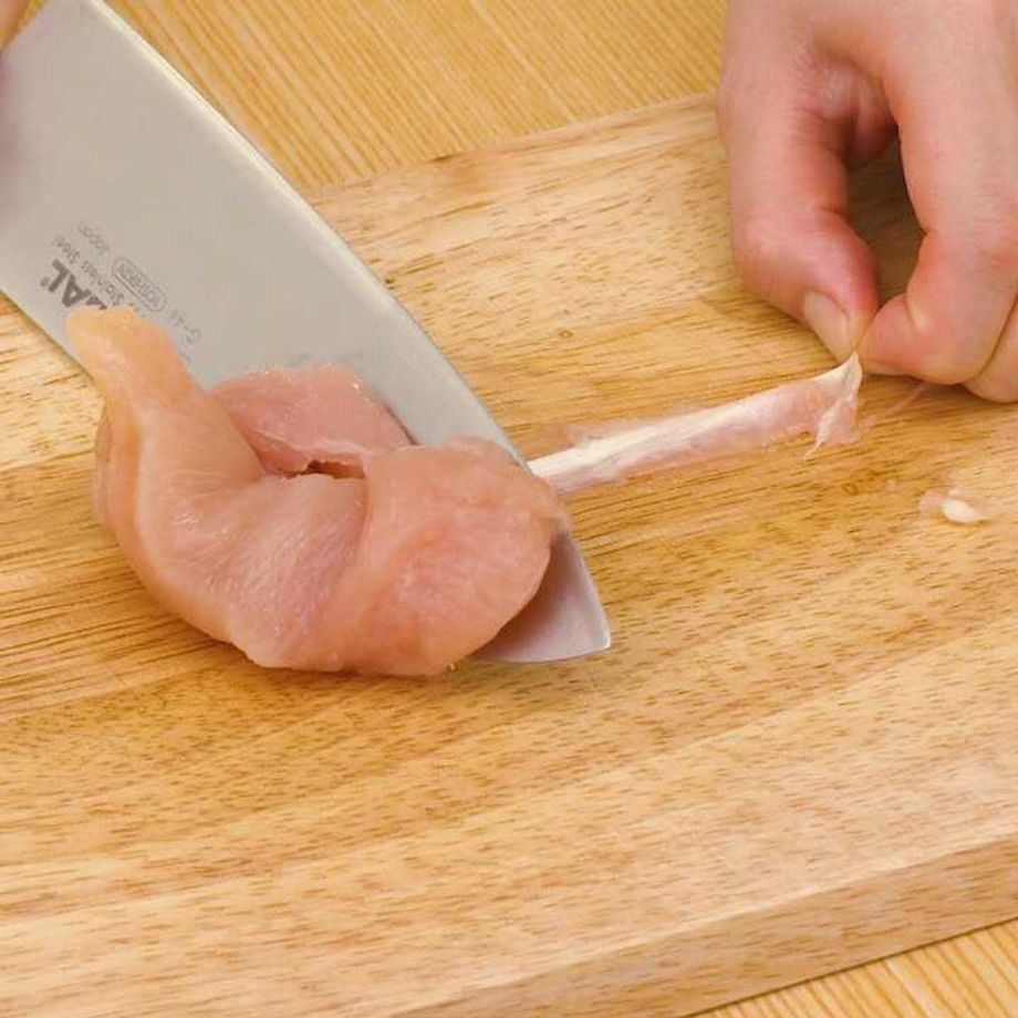 ささみの筋の取り方 - 肉の下ごしらえ 料理の基礎レシピサイトNadia。