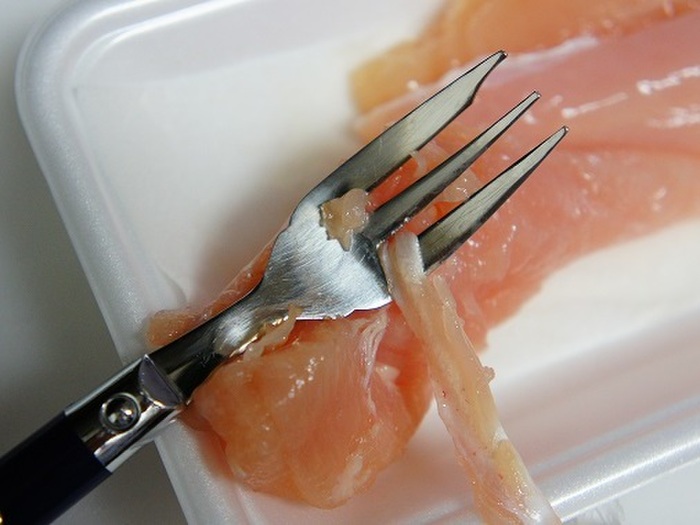 スルっと!ささみの筋取り 包丁 フォーク 裏ワザ- macaroni。