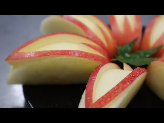りんごの飾り切り!花などおしゃれなりんごカット5選を動画で紹介。やまでら くみこ のレシピ。