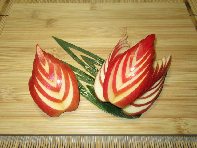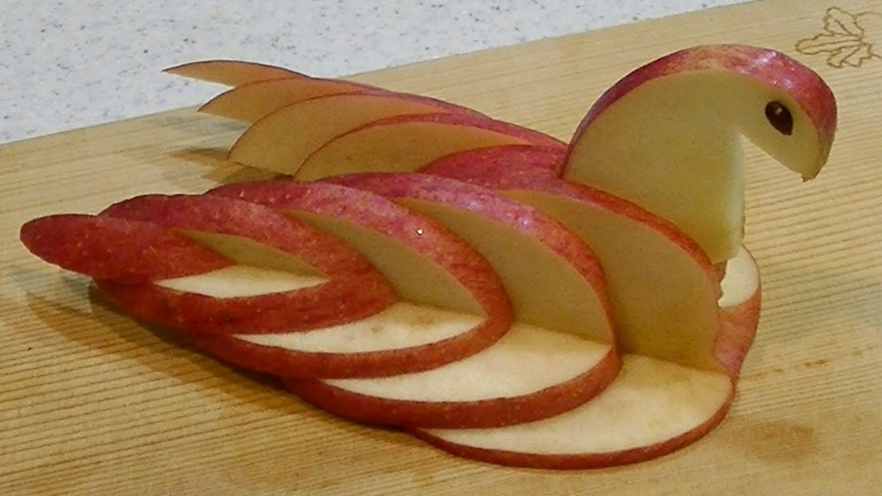 果物飾り切りの簡単な方法!りんご飾りスワンの作り方。