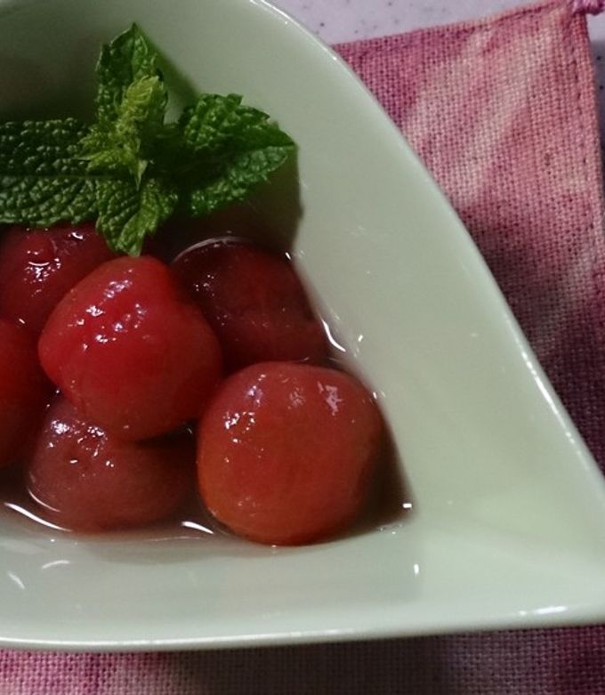涼風トマトの和風デザート☆トマトの和風コンフォートトマトの蜜煮デザート。季節野菜のデザート。