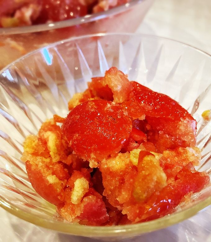 夏の簡単ヘルシースイーツ材料3つで塩トマトかき氷。