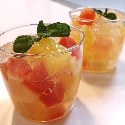 ペットボトル1本分のフルーツジュースで作る寒天ゼリー型にはまったお菓子なお茶の時間。